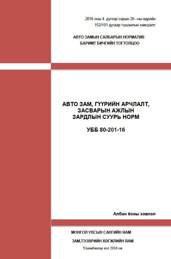 | Хүчин төгөлдөр болгосон эрх зүйн акт | 2016 оны 4 дүгээр сарын 26 –ны өдрийн 152/101 дугаар тушаал |