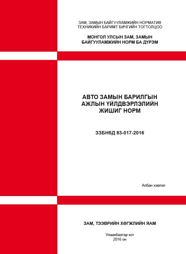 | Хүчин төгөлдөр болгосон эрх зүйн акт | Зам, тээврийн сайдын 2016 оны 7 дугаар сарын 08-ны өдрийн 187 дугаар тушаал |