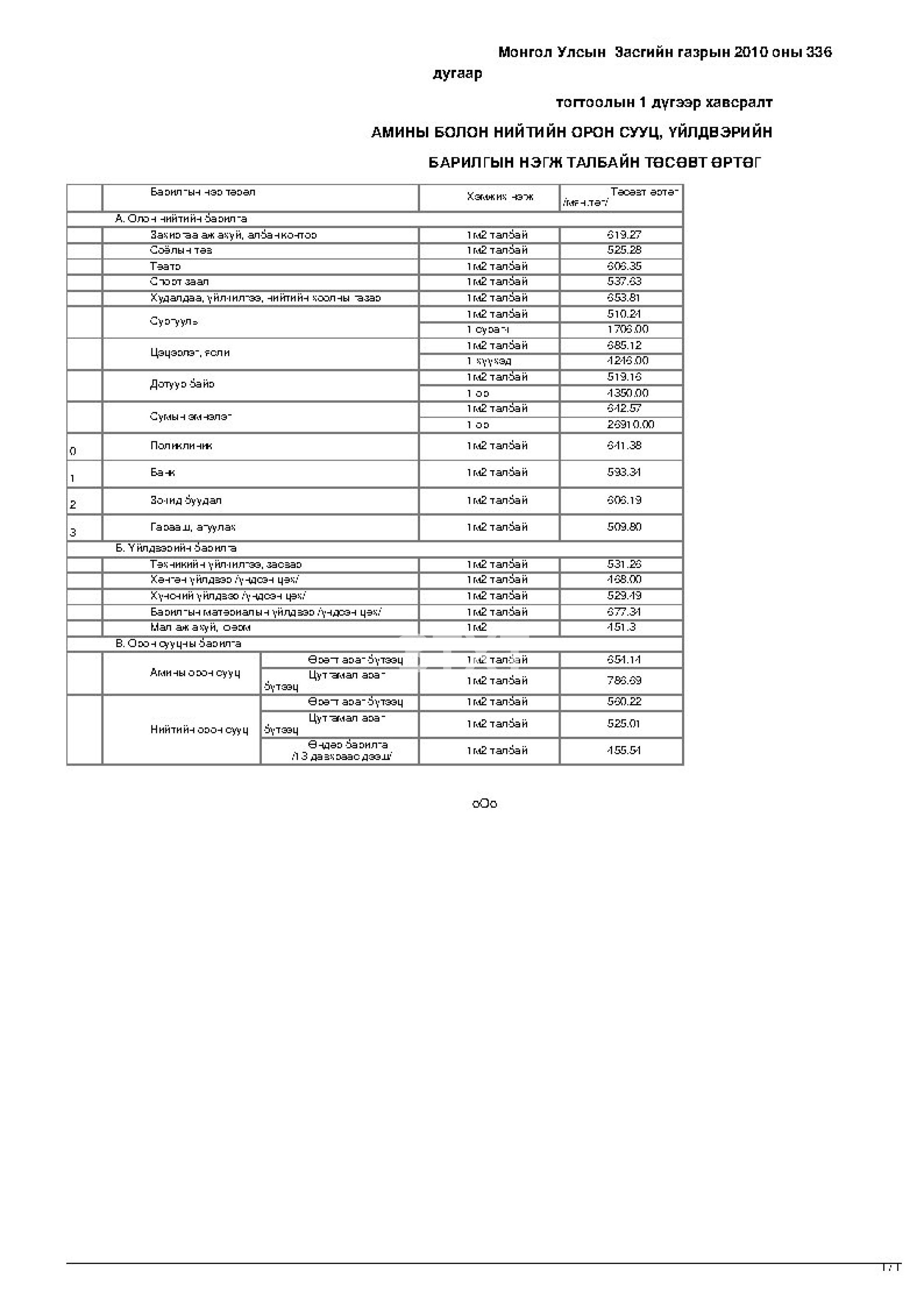 Барилгын нэгж талбайн төсөвт өртөг, төсвийн жишиг үнэлгээ