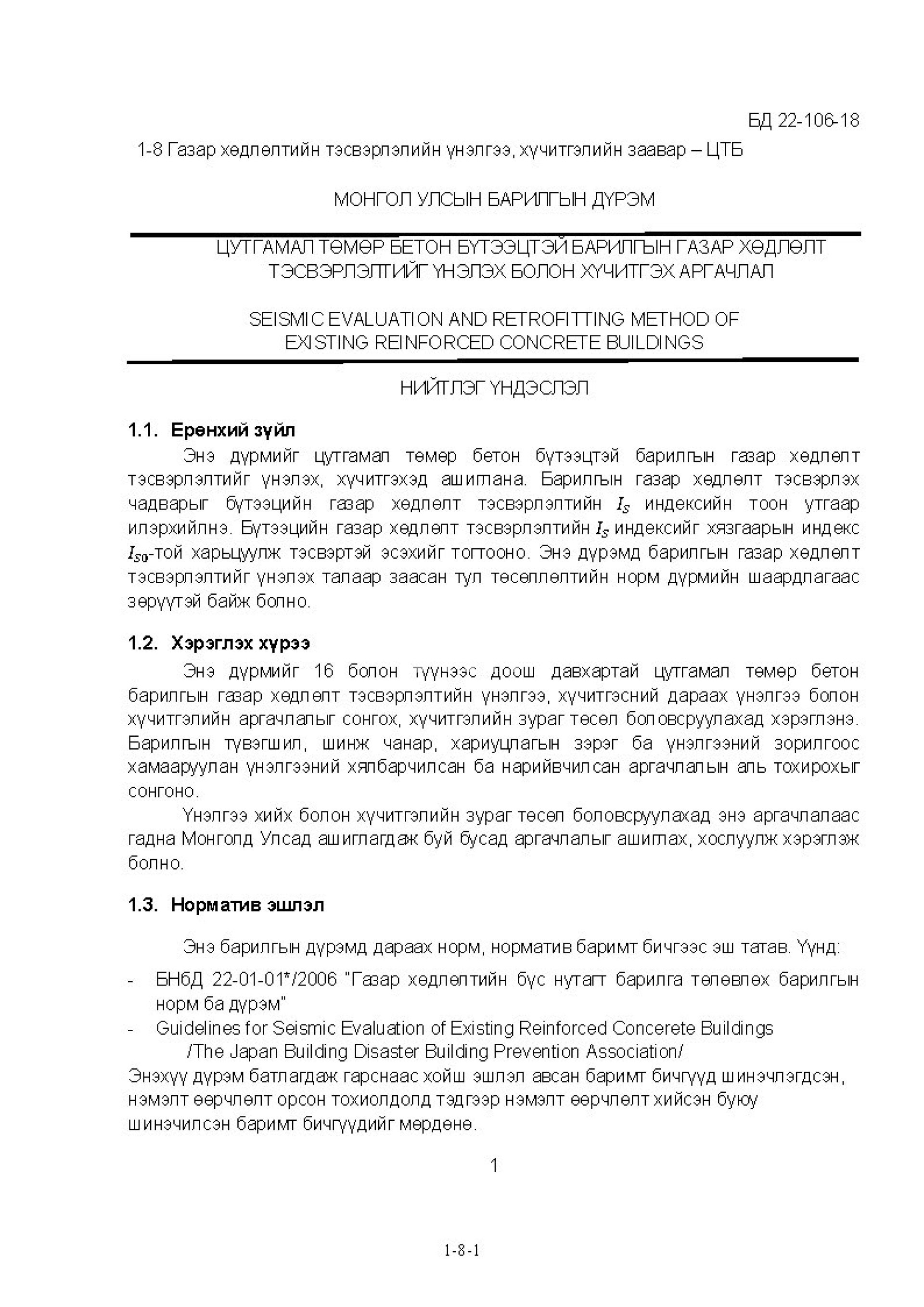 ЦУТГАМАЛ ТӨМӨР БЕТОН БҮТЭЭЦТЭЙ БАРИЛГЫН ГАЗАР ХӨДЛӨЛТ ТЭСВЭРЛЭЛТИЙГ ҮНЭЛЭХ БОЛОН ХҮЧИТГЭХ АРГАЧЛАЛ